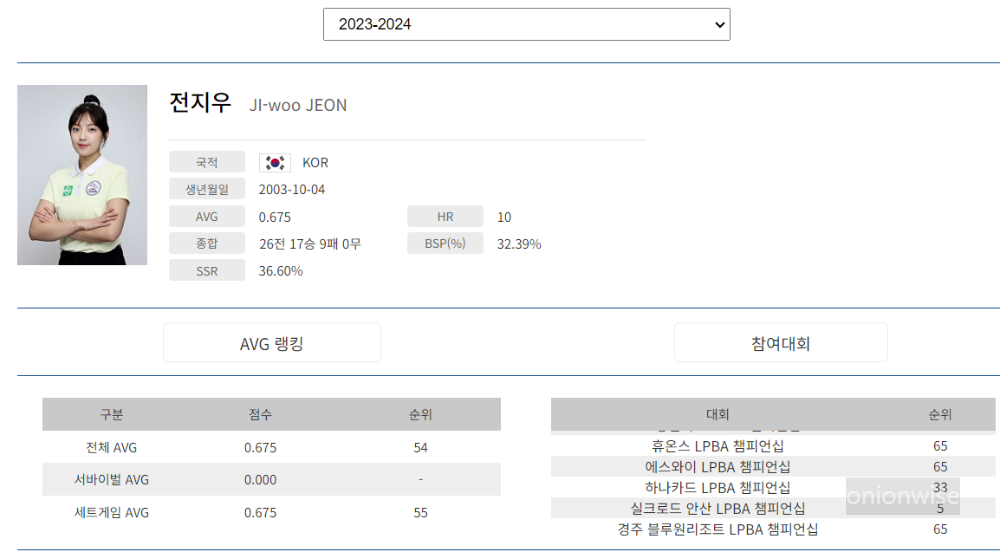 2. 프로당구 2023-24시즌 전지우 당구선수 LPBA 경기지표