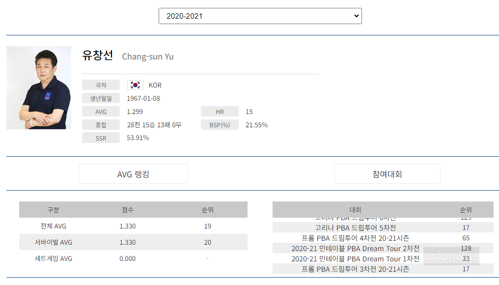 2. 프로당구 2020-21시즌, 유창선 당구선수 PBA드림투어 경기지표