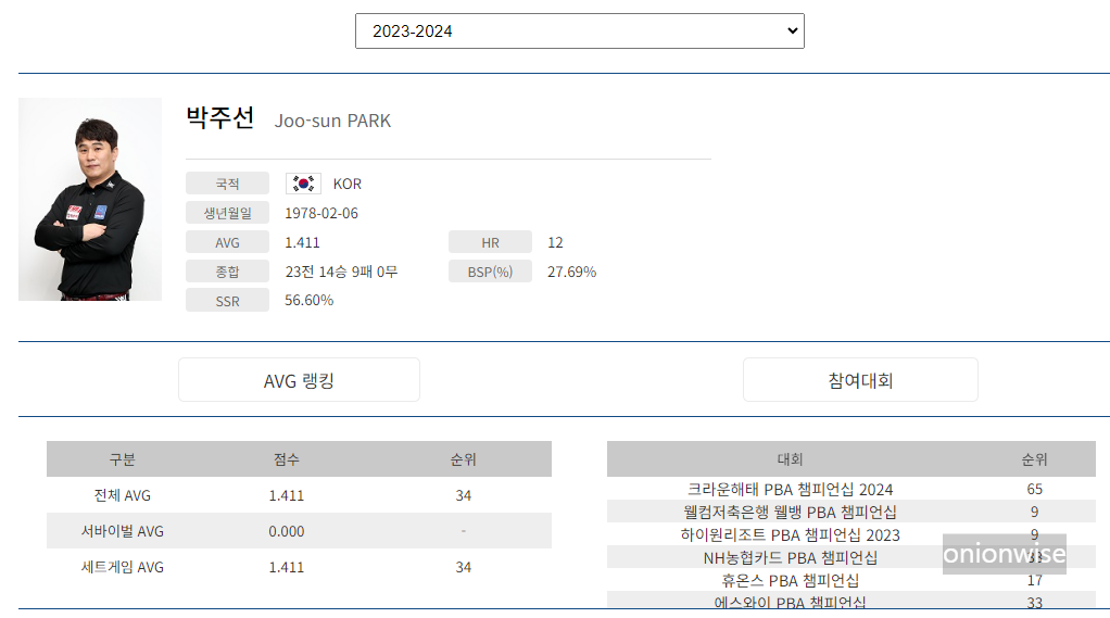박주선 당구선수 나이 프로필 :: 프로당구 PBA 투어 경기결과 경기지표 종합 페이지