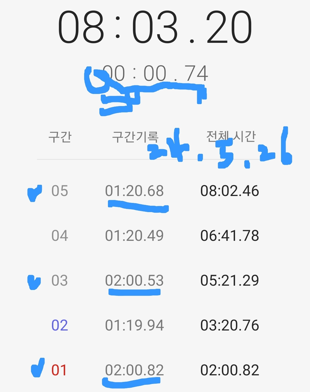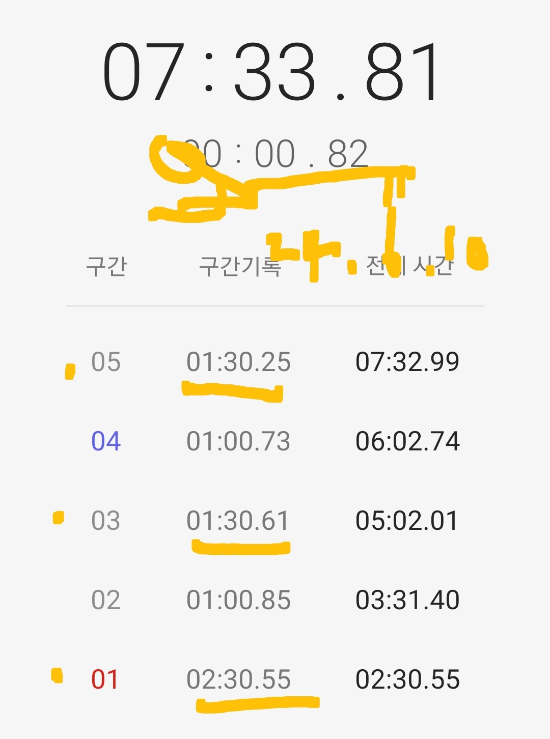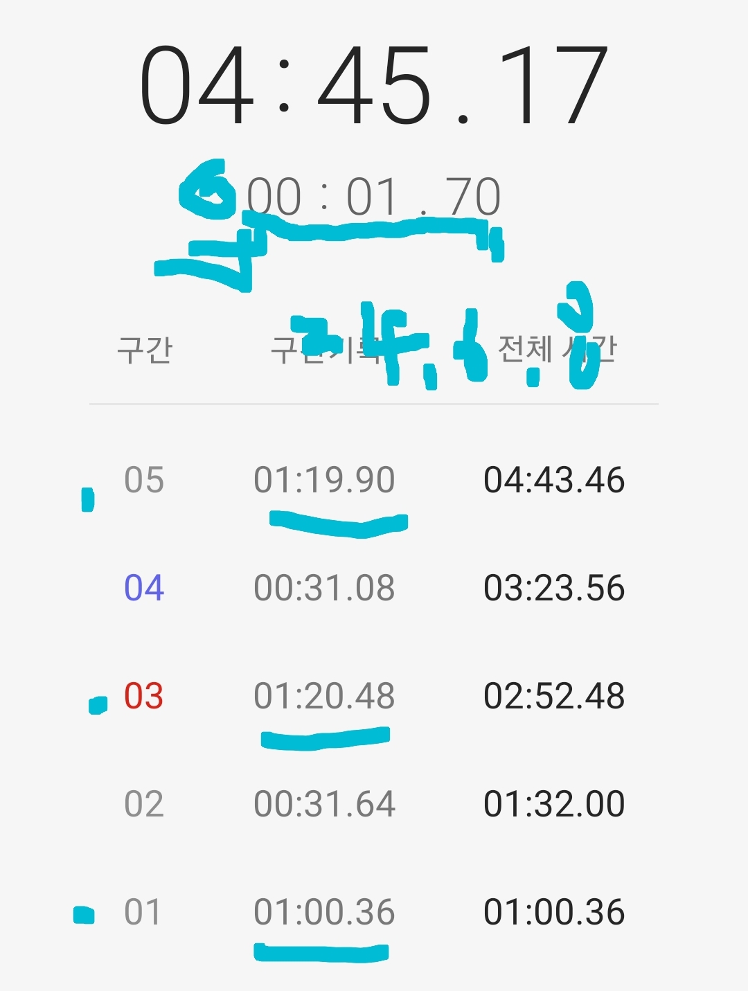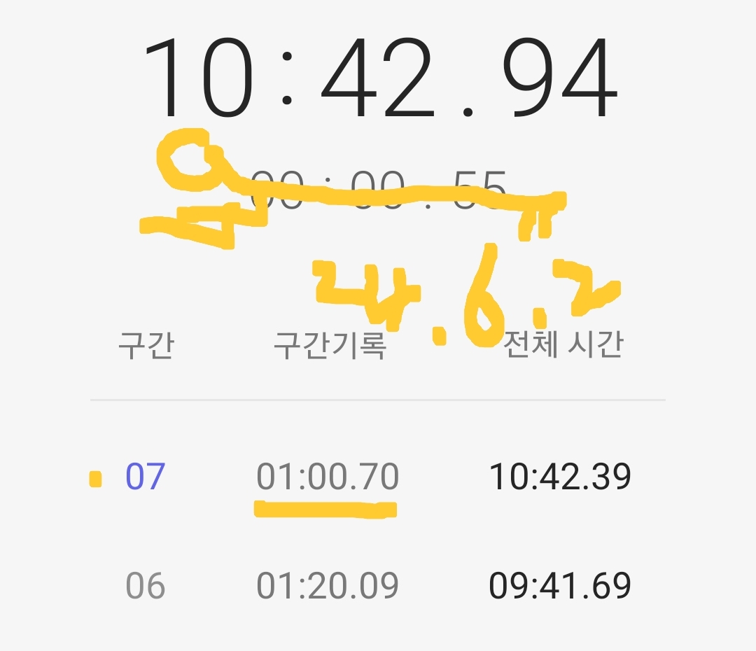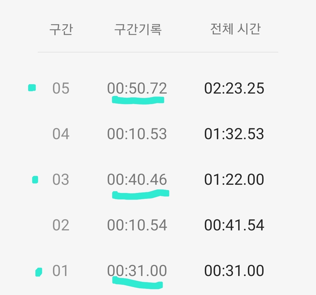 마음같아서는 한달전 1차 목표 3분 도전 때 3분 32초 달성 경험으로 4분 30초 정도 기록할 것으로 기대했는데 쉽지 않은 도전임을 절감했다.
