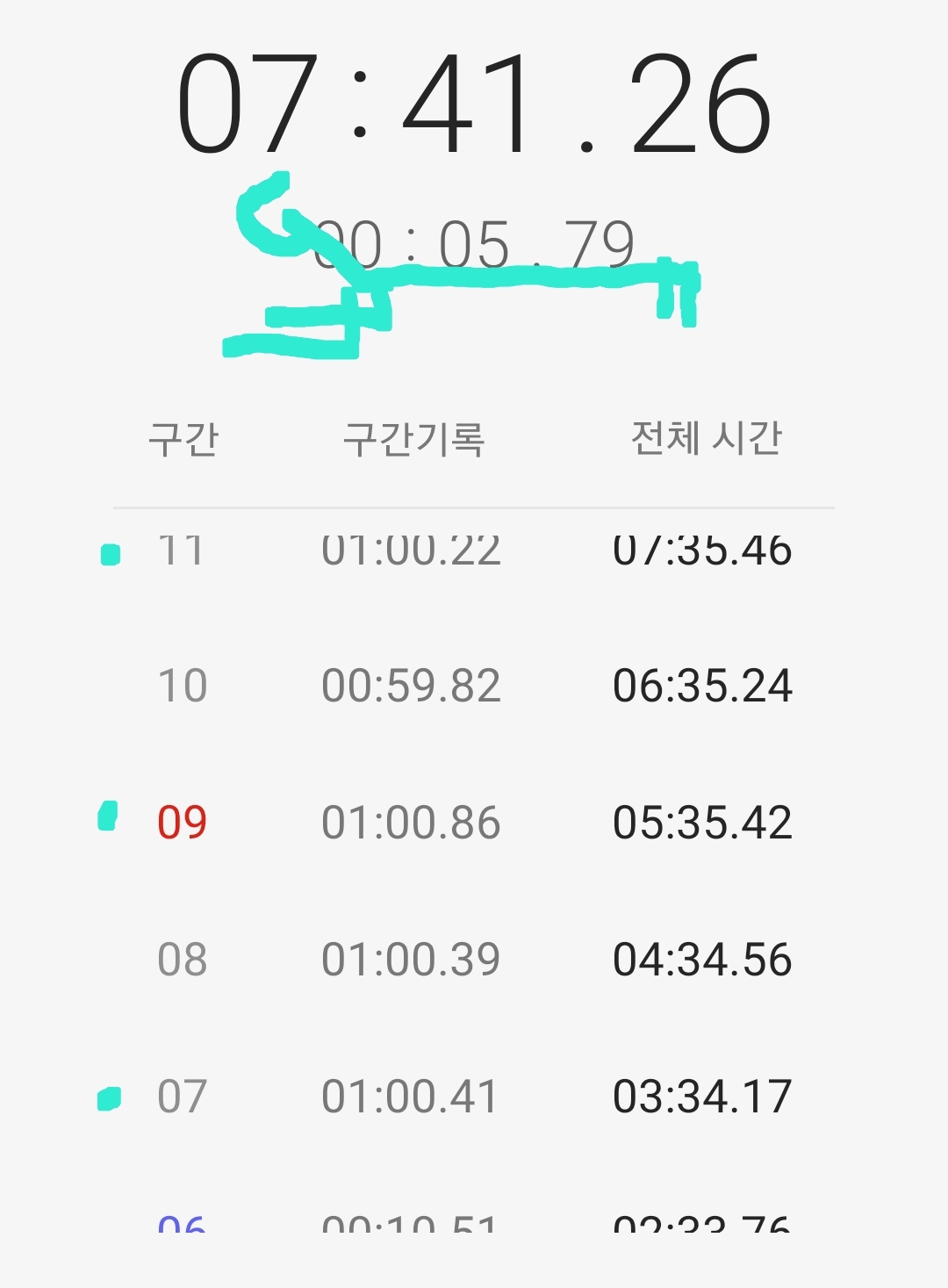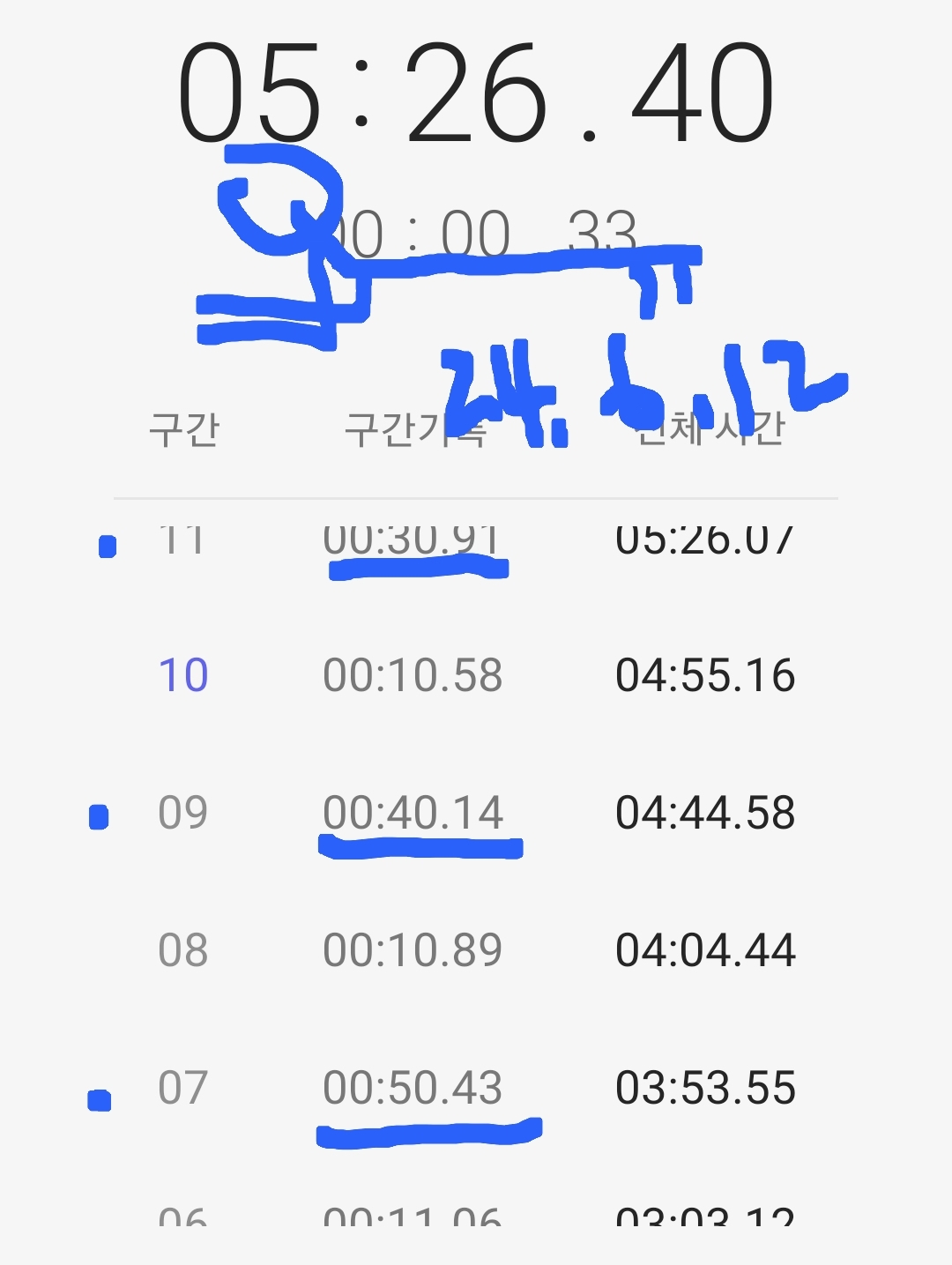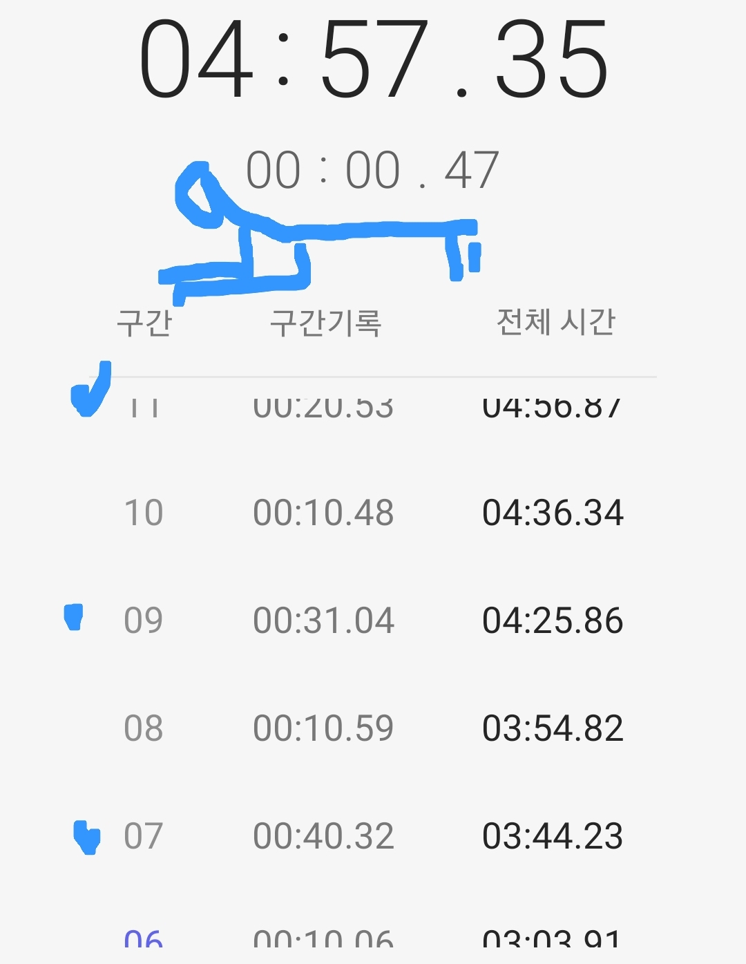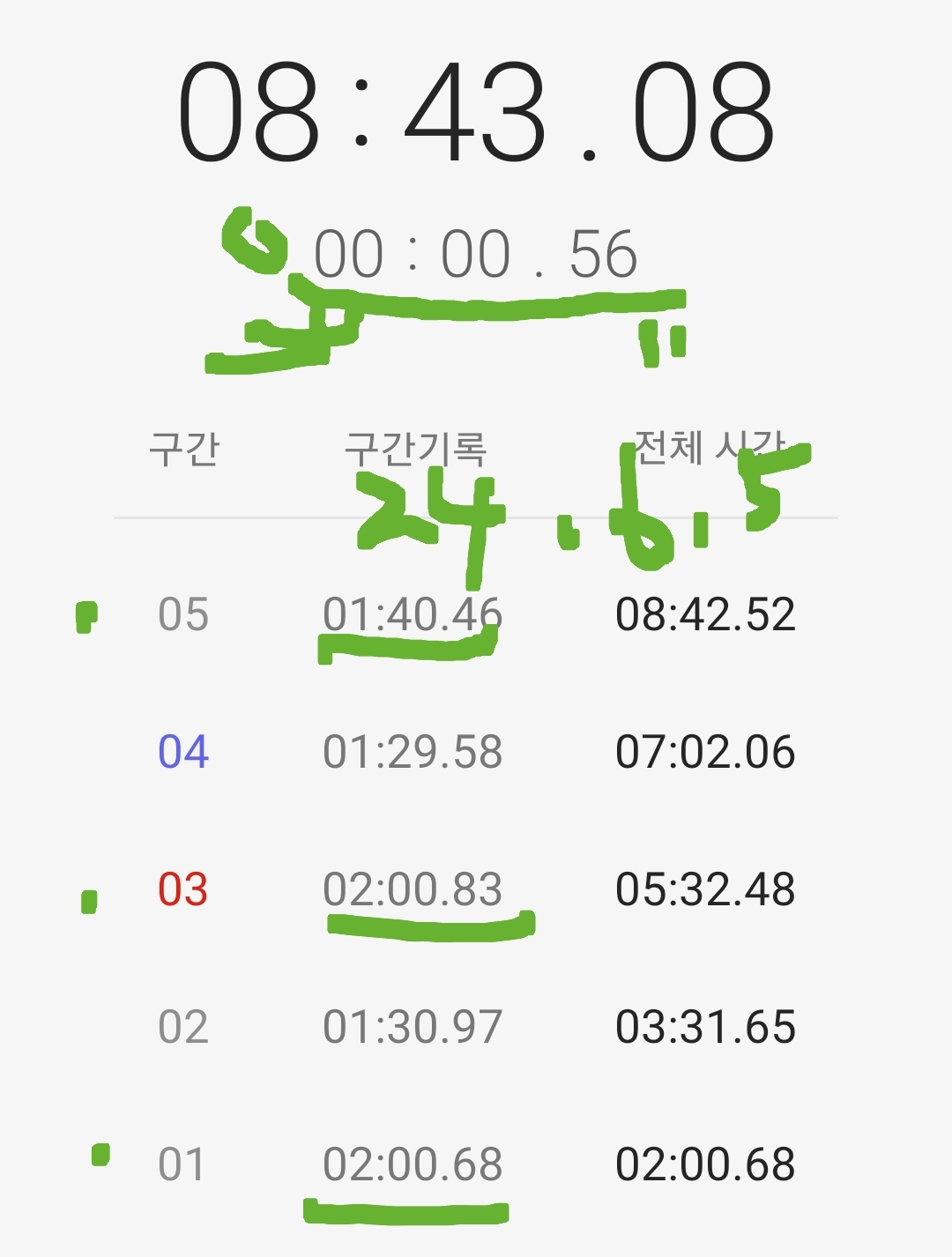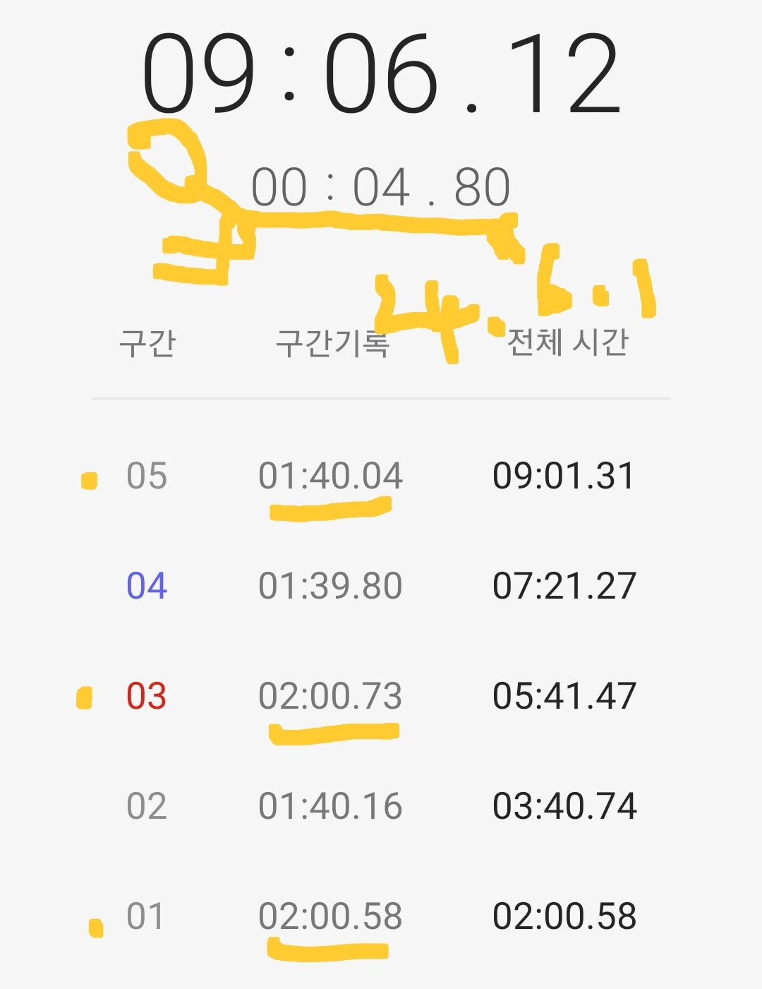 마음같아서는 한달전 1차 목표 3분 도전 때 3분 32초 달성 경험으로 4분 30초 정도 기록할 것으로 기대했는데 쉽지 않은 도전임을 절감했다.