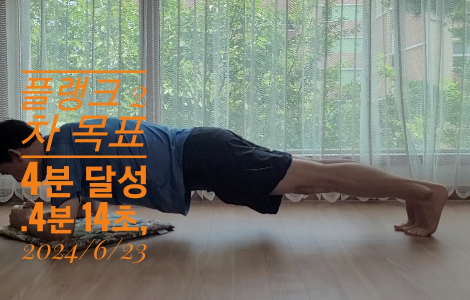 플랭크 4분 달성 영상은 따로 공유예정이며 다음 플랭크 목표는 3차 도전으로 5분을 목표로 근육부자 만들기 프록젝트는 계속됩니다.