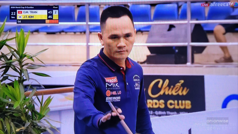 2024 호찌민 3쿠션 당구 월드컵 대회 결승전 경기결과, 베트남의 트란 덕민이 김준태를 상대로50:46으로 승리하며, UMB가 주관하는 세계 3쿠션 당구 월드컵 대회에서 난생 처음으로 우승을 차지했습니다. 트란 덕민의 결승전 에버리지는 2.091, 하이런은 8득점을 기록하였습니다.
