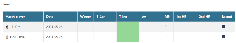 두 선수는 결승전에 올라오기까지 지난 일주일간 많은 경기를 소화했습니다. 트란 덕민 선수는 "2024 호치민 세계 3쿠션 당구 월드컵 대회" PPPQ라운드 부터 시작을 하여 PQ라운드, Q라운드를 뚫고 32강 예선 리그에 올랐습니다.