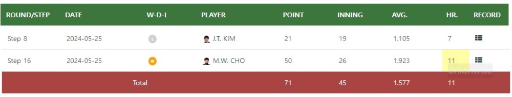 | 2024 호치민 3쿠션 당구 월드컵 조명우 경기결과 (0) | 2024.05.27 |