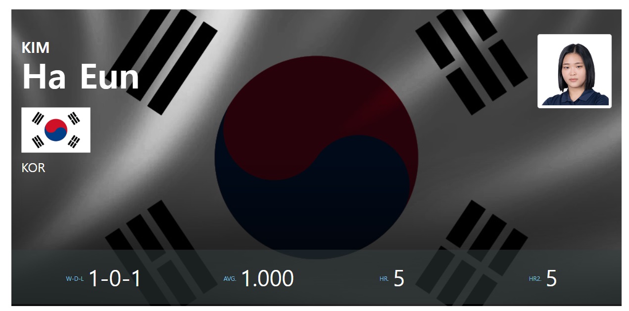 김하은은 덴마크 선수를 상대로 애버리지 1.250을 기록하면서 30대 16으로 승리했으나, 튀르키예의 부르한 선수에게 30대 14로 패배하였습니다.