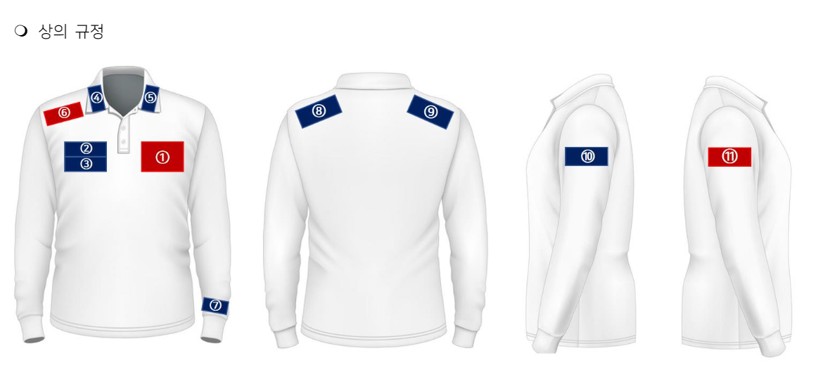 후원사 로고 부착이 필요한 경우, 패치 부착이 가능한 형태의 경기복 착용을 권장한다. 카라 또는 소매가 없는 경기복을 착용하고 피부에 패치를 부착하는 경우, 피부면에 잘 붙고 쉽게 떨어지지 않도록 준비하여야 한다. (점착력 사전 확인, 팔토시 착용 등)