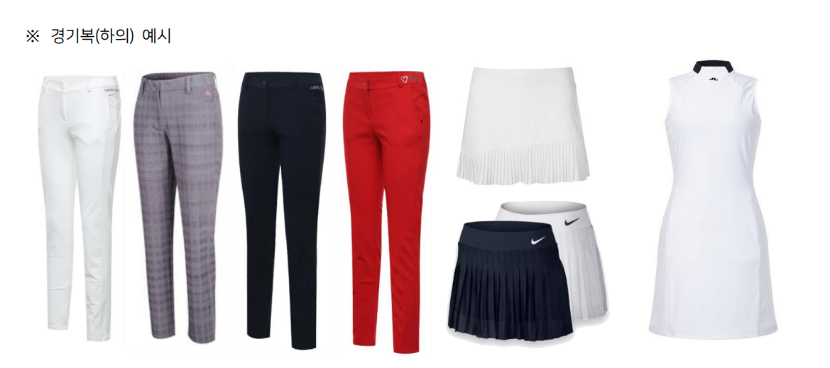 LPBA투어 선수 하의 복장 규정입니다 스포츠 웨어, 면 재질 등의 경기복(바지, 치마, 원피스, 반바지 등)을 착용하여야 한다. 청바지(블랙진 포함), 등산 바지 착용을 금지한다.