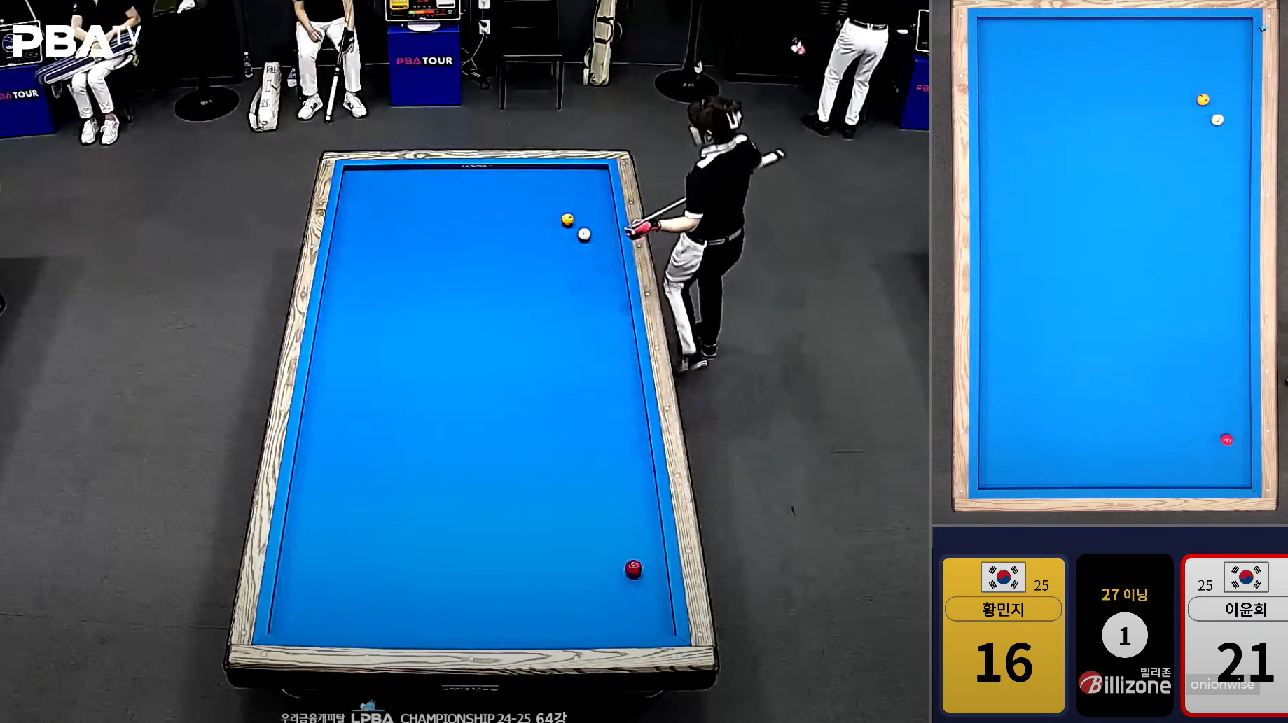 이윤희 선수는 프로당구 2024-25 시즌, 개막전 64강에서 황민지 선수에게 승리하며 32강에 진출하였습니다. 그것도 애버리지 0.852의 좋은 경기력으로 23:16으로 승리하였습니다.
