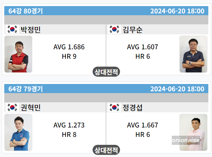 우리금융캐피탈 PBA 챔피언십 64강 경기는 6월 20일 오후 1시, 3시 30분, 저녁 6시 , 8시 30분, 11시에 걸쳐서 펼쳐집니다.