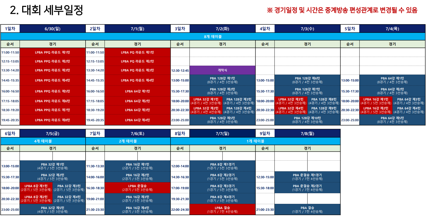 3. 하나카드 PBA LPBA투어 대회 세부 일정