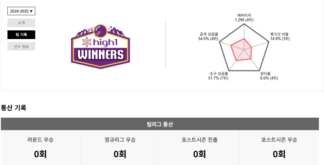 프로당구 2023-24 시즌에 창단된 하이원리조트 위너스 당구팀 (하이원 당구팀)은 통상 정규리그 5위 이내 팀이 참가할 수 있는 포스트시즌 진출 기록이 2024-25시즌까지는 아직 없습니다. 이번 시즌에는 가능할까요?