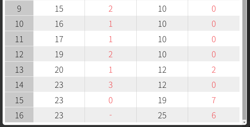 하나카드 LPBA 챔피언십 64강 - 김가영 VS 정수빈 경기의 기록지를 살펴보면, 김가영 선수로서는 더 아쉽습니다. 김가영은 5이닝까지 13:3으로 크게 앞섰습니다. 정수빈이 따라왔으나 8이닝에는 13:10으로 앞서 나갔습니다.
