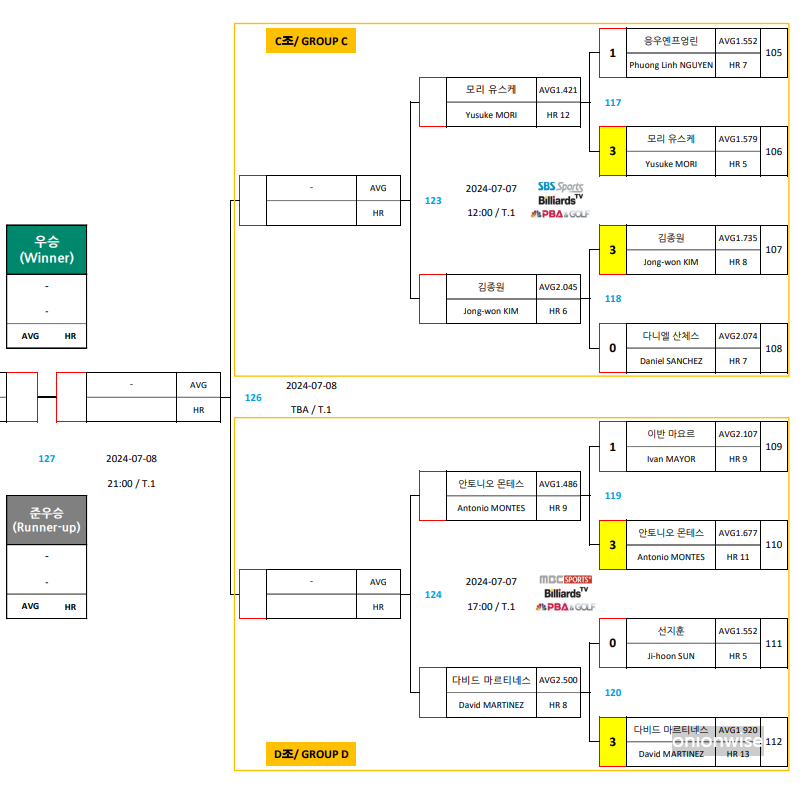 하나카드 PBA 챔피언십 16강 대진표 -32강 경기결과 (2024-25시즌) (0) | 2024.07.06 |