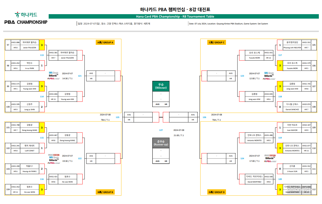 2. 하나카드 PBA 챔피언십 8강 대진표