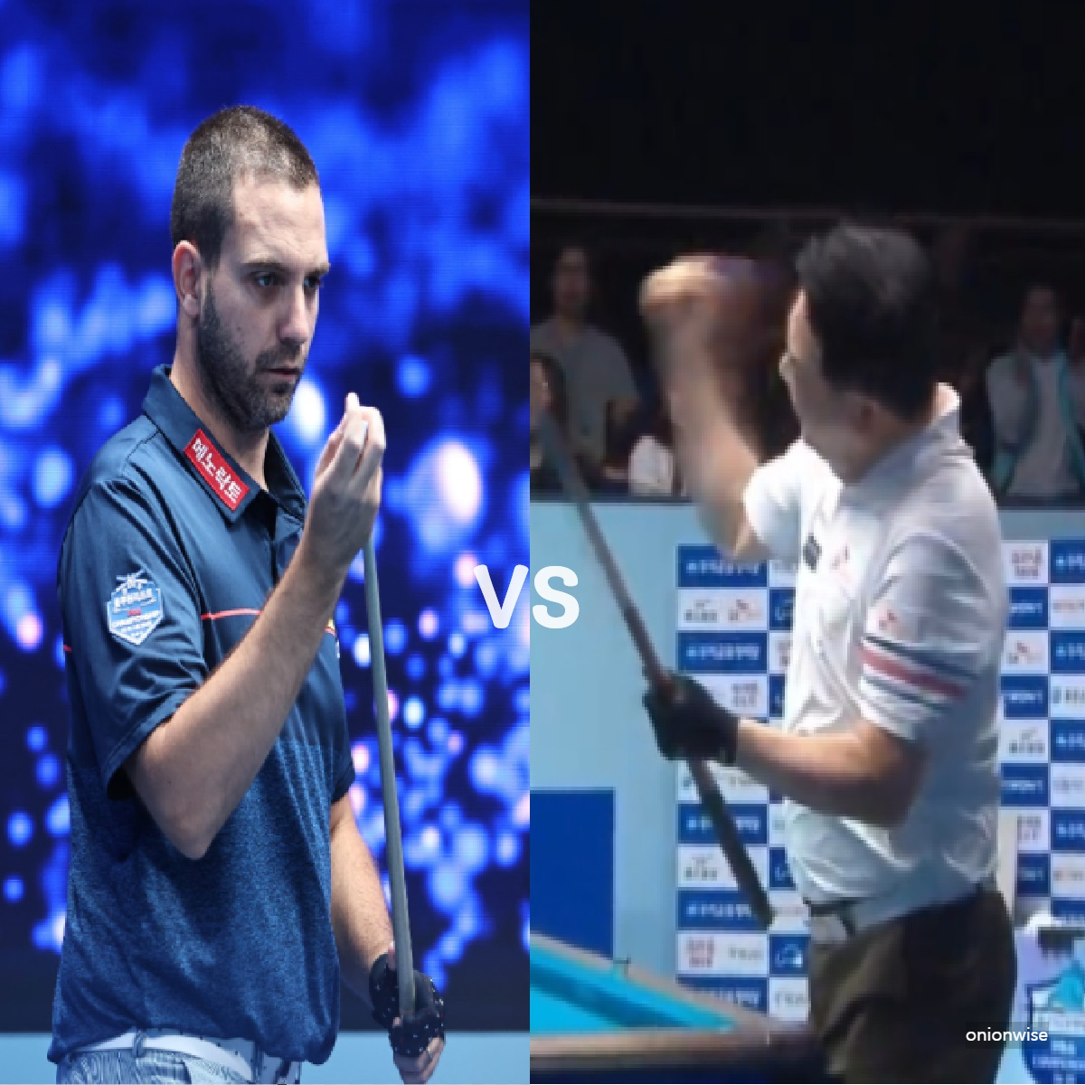 강동궁이 올라가면 대한민국 3쿠션 vs 스페인 3쿠션 경기가 되지만, 팔라손이 올라가면 한국에서 펼쳐지는 두 스페인 당구선수끼리의 경기가 됩니다. PBA 프로당구 무대에 진출해 있는 스페인 선수들이 워낙 강해 어느 쪽도 쉽게 예단할 수 없습니다.