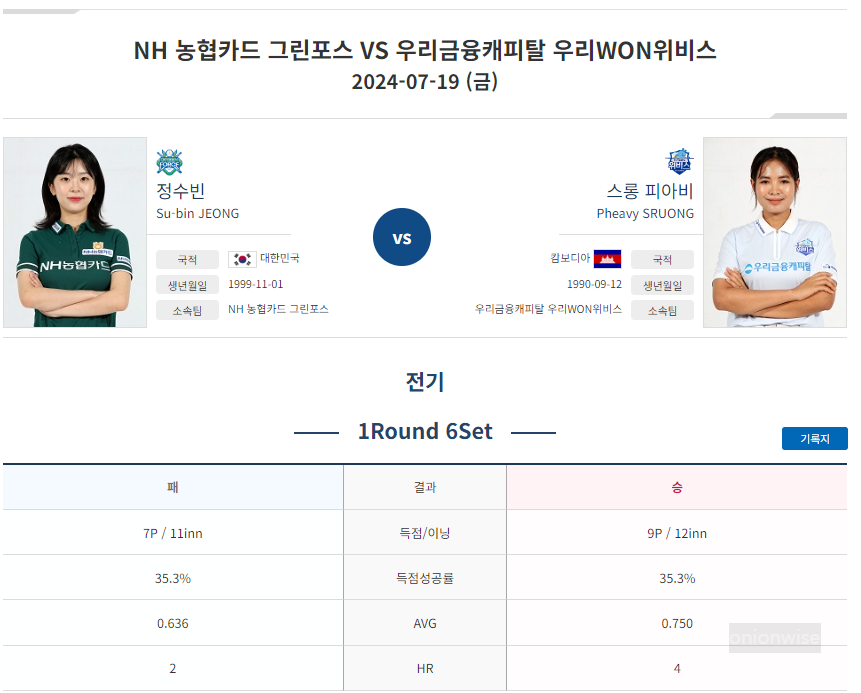 한편 NH농협카드 당구팀의 정수빈 선수는 LPBA 투어 7회 우승에 빛나는 스롱 피아비를 상대로 초반리드는 물론 주눅들지 않는 경기를 펼쳤습니다. 오늘 팀 승리를 얻는데까지는 실패했지만, 앞으로 큰 성장 가능성을 충분히 보인 경기였다고 할 수 있겠습니다.
