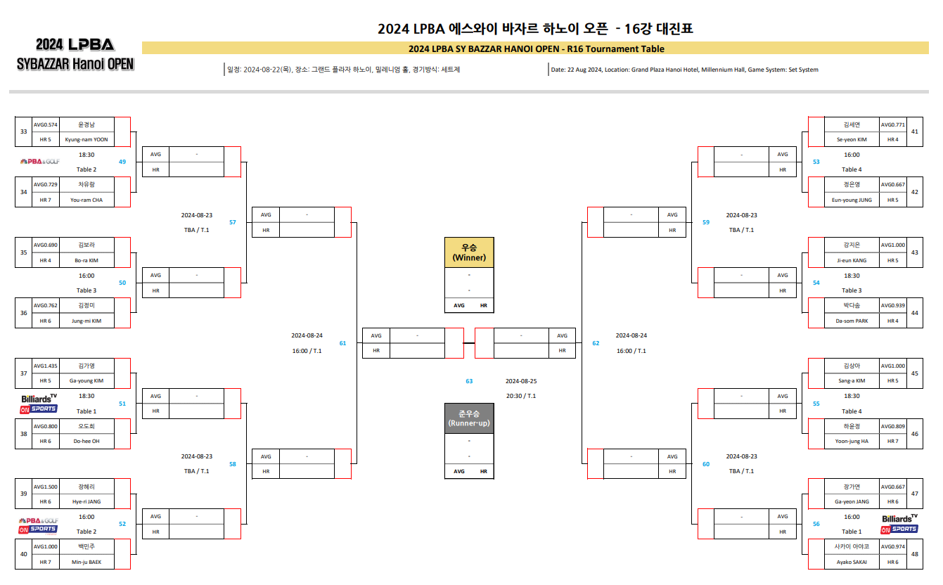 ■ 2024 에스와이 바자르 하노이 오픈 LPBA 챔피언십 16강 대진표
