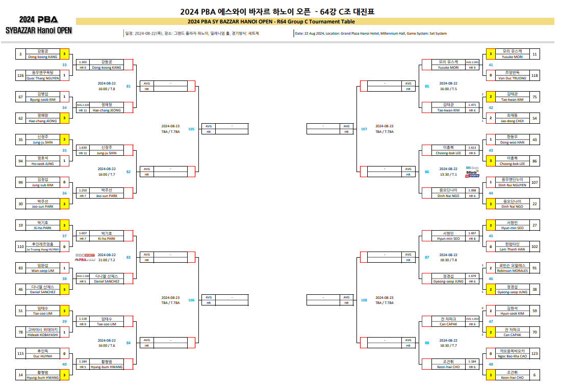 2024 에스와이 바자르 하노이 오픈 PBA 챔피언십 64강 C조 대진표입니다.