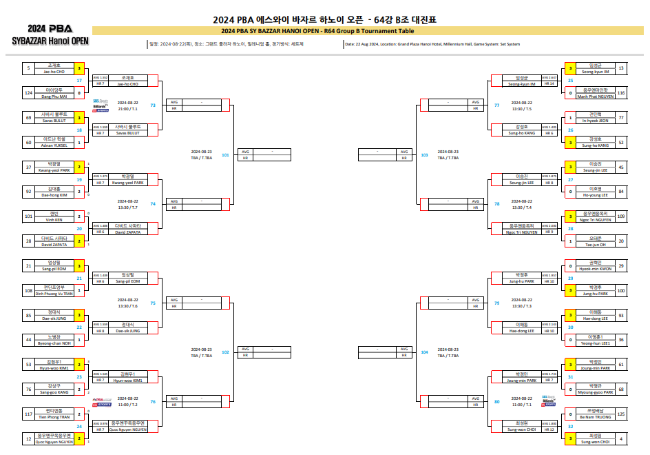 2024 에스와이 바자르 하노이 오픈 PBA 챔피언십 64강 B조 대진표입니다.