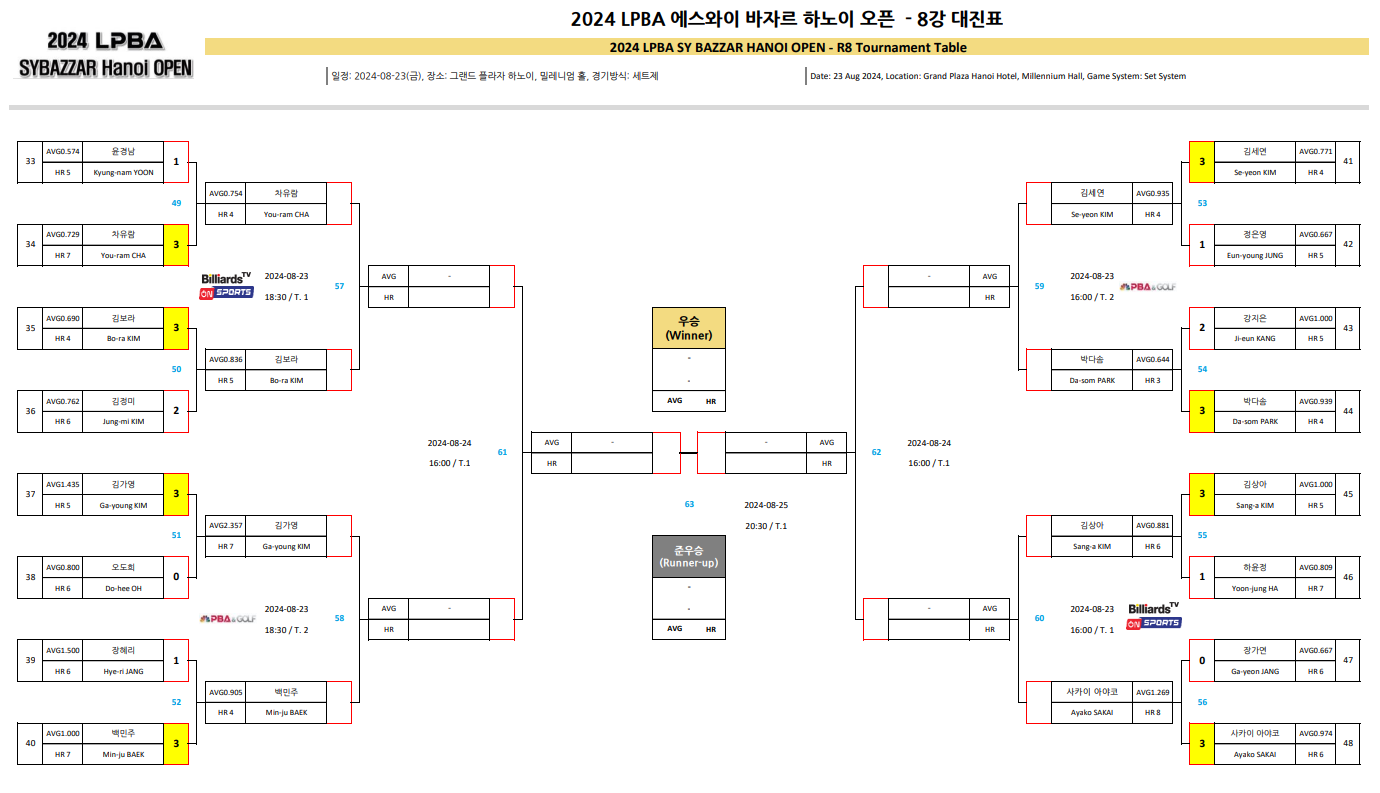 2024 에스와이 바자르 하노이 오픈 LPBA 챔피언십 8강 대진표 (1)