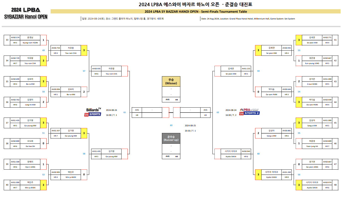 2. 에스와이 바자르 하노이 오픈챔피언십 lpba 4강 대진표