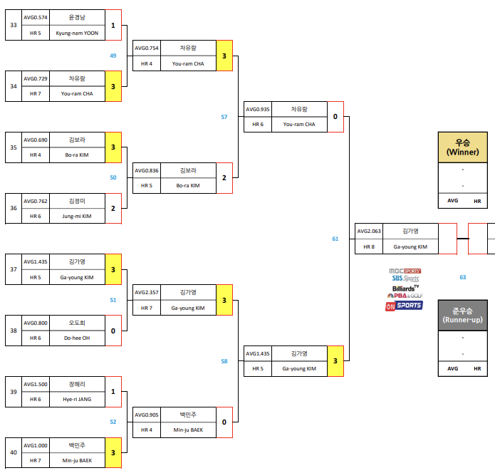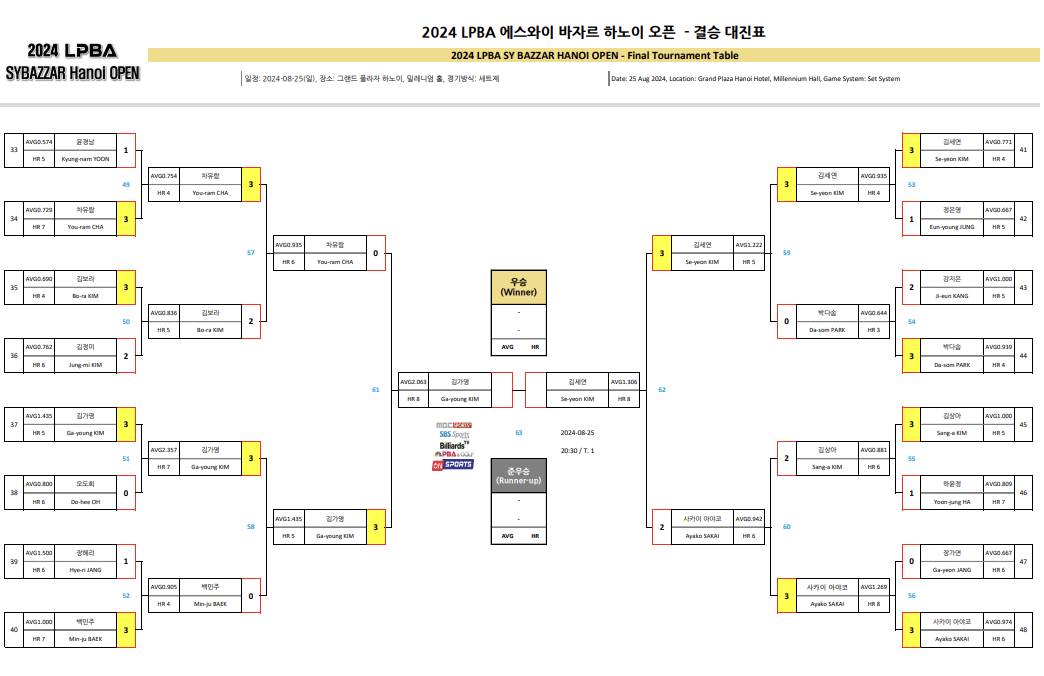 ■ 에스와이 바자르 하노이 오픈 LPBA 챔피언십 결승 대진표