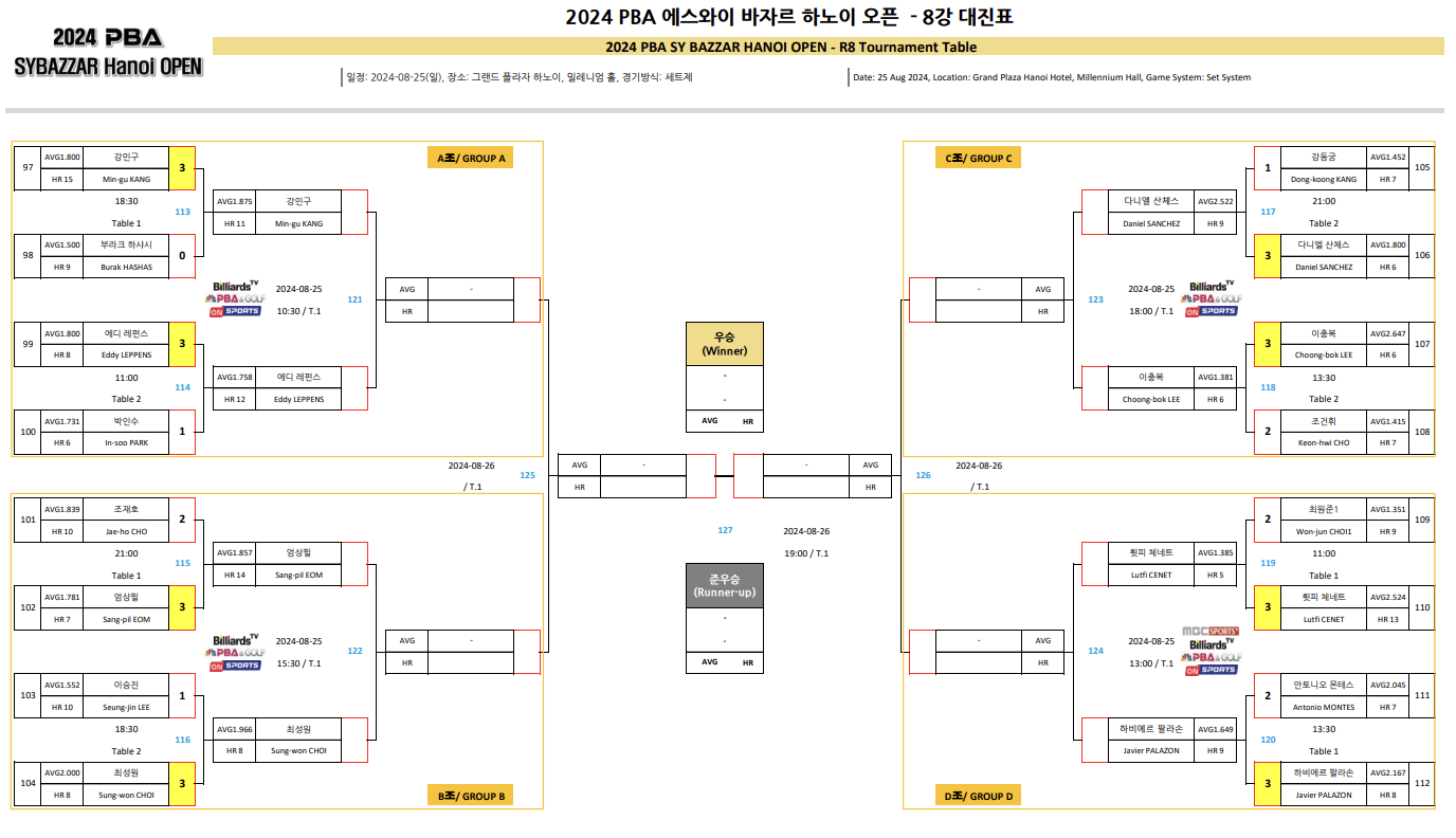 2. 에스와이 바자르 하노이 오픈 PBA 챔피언십 8강 대진표