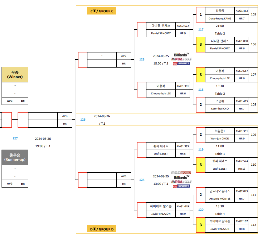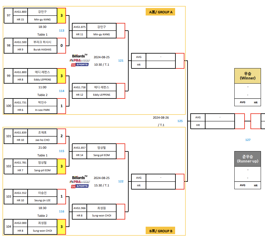 | 에스와이 바자르 하노이 오픈 LPBA 결승 대진표 4강 준결승 경기결과 (0) | 2024.08.24 |